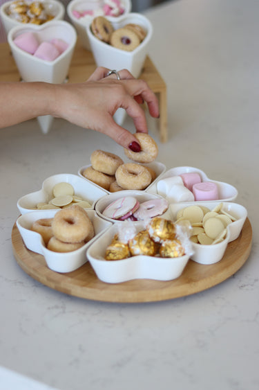 7 Pc Lazy Susan Heart Snacking Station - Natural