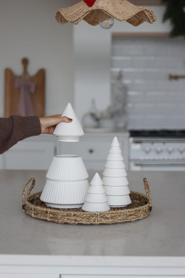 Add a gentle touch to your winter styling with the Fluted Tree Trio Bundle. This curated set features two beautifully detailed fluted trees in complementary sizes, paired with the matching fluted tree jar to complete the look.