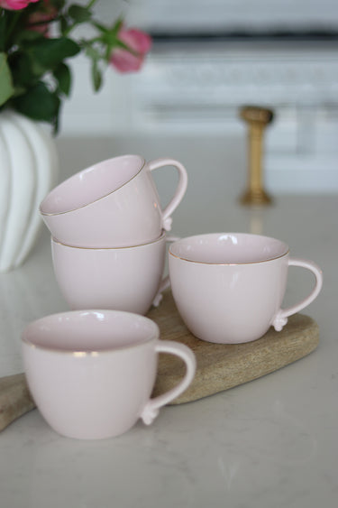 Heart Handled Ceramic Mug Set – 4 Piece – Pink Gold Trim