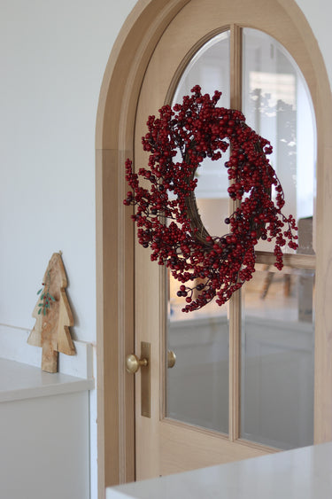 A simple but timeless faux winter berries Christmas wreath, see in the new season with our deep reds winter berry wreath. Formed on a natural wicker wreath base, it is perfect for welcoming the colder days.