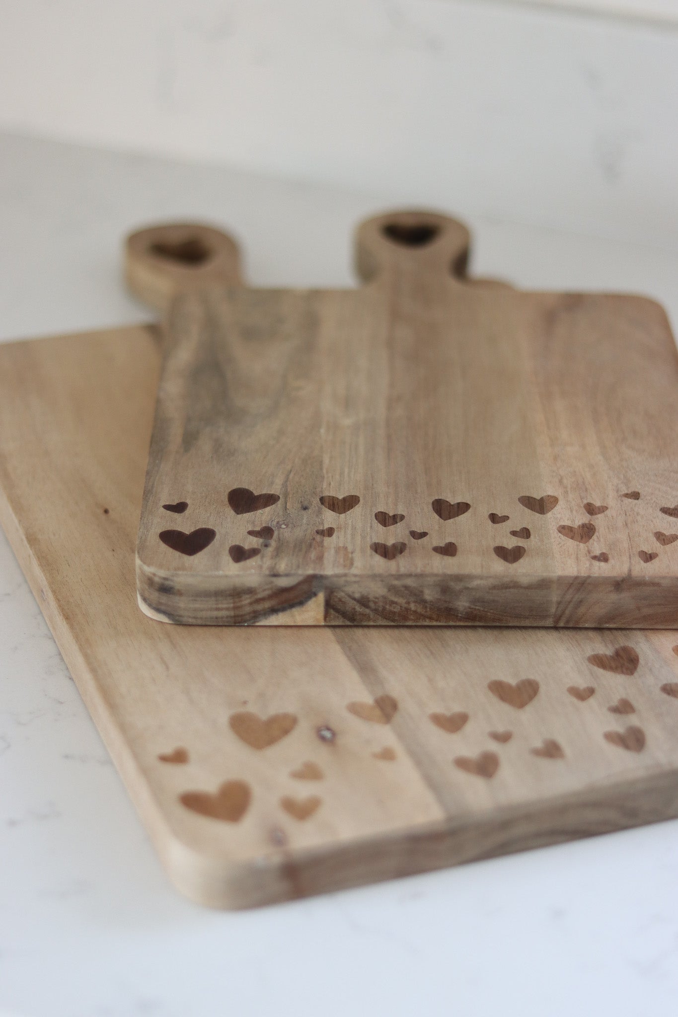 Wooden chopping boards should be cleaned with warm water and mild washing-up liquid after use, then dried immediately. To maintain the surface, occasional oiling with food-safe oil helps prevent drying and keeps the wood looking its best.