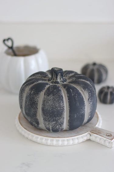 Make a bold statement with the captivating Large Black Resin Pumpkin. This stunning centre piece adds a touch of elegance to your autumn home decor. Its deep black hue creates a striking contrast against the warm tones of autumn, making it a standout piece in any autumn table decorations. With its remarkable size and impeccable craftsmanship, this pumpkin is sure to leave a lasting impression.