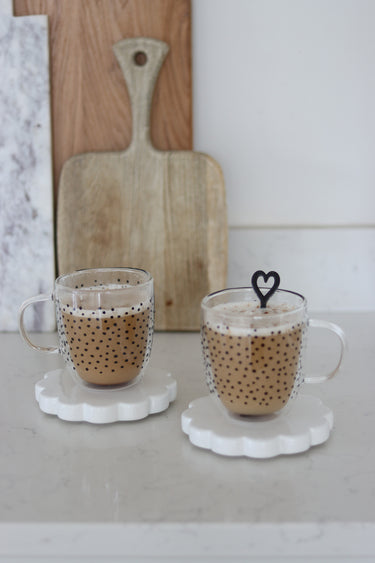 This mug set features a generous rounded shape with a playful black cosmos polka dot pattern, giving the pair a relaxed, decorative feel. Designed as a big mug set, the larger capacity makes it ideal for longer hot drinks without feeling bulky in the hand.
