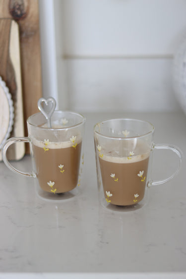 Slim Double Walled Glass Mug Set - 2 Piece - Early Autumn