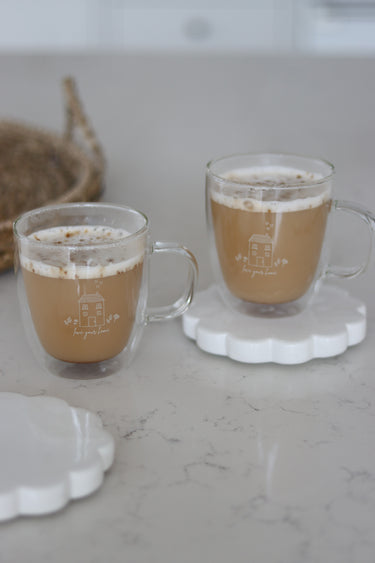 Double Walled Glass Mug Set – 2 Piece – LoveYourHome/White