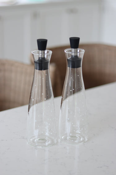The tall shape makes these bottles easy to grip and ideal to leave out on the worktop or dining table. Decorative enough to be on display and useful enough for daily cooking, they fit naturally into relaxed kitchen styling alongside other glassware and accessories.