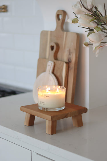 These simple square small stools are a perfect accessory to your home, adding a raised service on your kitchen worktops is an easy way to draw attention to your products and styling. Simple place a candle holder on top, a simple white ceramic vase, salt and pepper mills or simple rest a set of pretty mugs on top. Multiple uses for these simple wood stools made from recycled pine wood in a variety of colours.