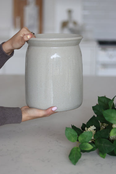 This ceramic vase is finished with a soft grey glaze, making it an easy piece to style across a range of interiors. The neutral colour and simple shape allow it to sit comfortably in both modern and more traditional spaces without overpowering the room.