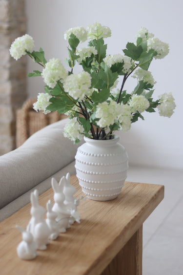 Als u op zoek bent naar faux bloemen van hoge kwaliteit, is onze bessenspray de perfecte stengel voor uw huis voor de helderdere en warmere seizoenen. Ze kunnen op zichzelf worden gebruikt met 2 of 3 sprays samen om een ​​eenvoudig maar mooi display te maken of een of twee toe te voegen aan een ander arrangement om de perfecte vulstal te maken. Deze stengels kunnen worden gebogen of zorgvuldig worden gesneden tot de gewenste grootte, in deze afbeelding hebben we 7 stengels gebruikt in onze St Ives -vaas. STEMS worden afzonderlijk verkocht.