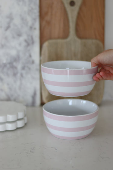 Ceramic Bowl Set – 2 Piece – Pink Stripes
