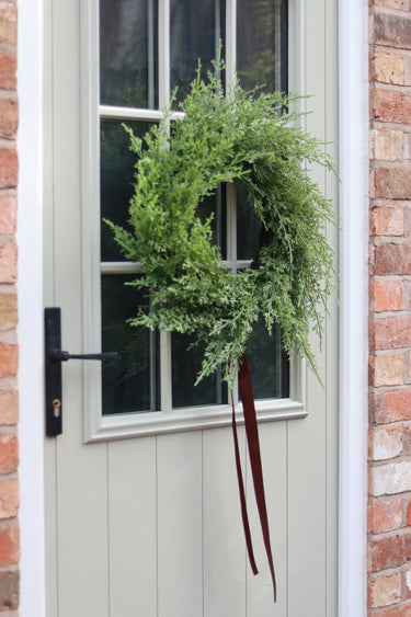 This Christmas wreath is a lifelike all-green design made from real touch faux Cedar. Simple and adaptable, it’s ideal for front door wreaths or interior styling, bringing effortless Christmas greenery to any home.
