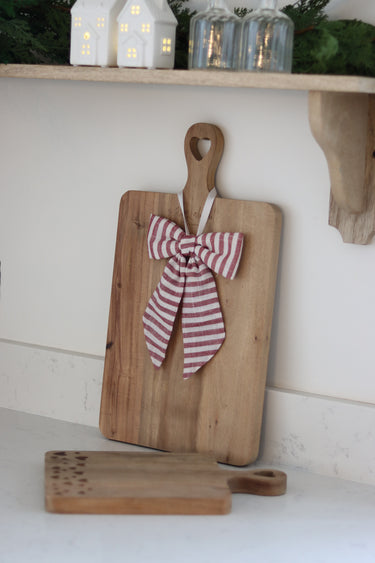 These wooden chopping boards make a great addition to the kitchen, with unique laser engraved heart detailing to add a pretty little home feel you your kitchen. If unique home decor is your style these chopping boards are perfect for you. Our boards are heavy and very well made they are suitable for food preparation or use as a grazing board or simple to use as a display piece to rest your kitchen decor on around the home. Great to leave on display around the home for guests to admire or to use for general use around the home. (Bow not included, plain on the back or flip over for the heart detailing)