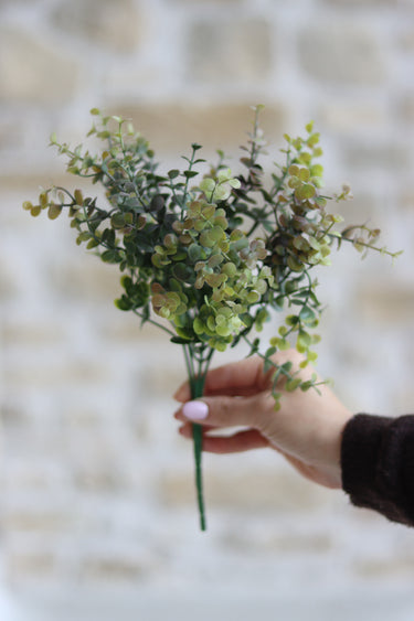 These faux flowers feature a soft eucalyptus spray design, ideal for adding gentle greenery and texture to your home styling. With natural-looking leaves and a relaxed shape, this faux stem works well styled on its own or mixed with other faux flowers for a fuller arrangement.