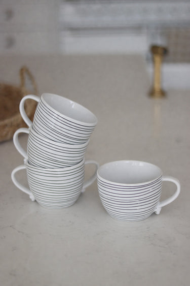 Heart Handled Ceramic Mug Set – 4 Piece – Horizontal Stripes