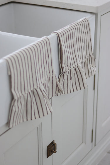 Layer over a kitchen rail or use alongside beige and off-white linens to create contrast. These brown striped tea towels bring warmth to any home setting.